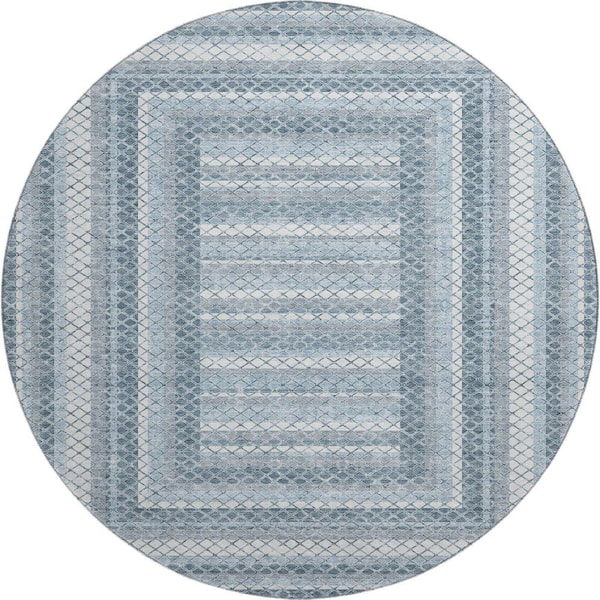 Mayfield Premium Machine Washable Abstract AMF2011 Denim 8 ft. x 8 ft. Round Rug