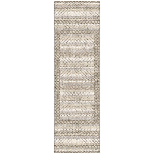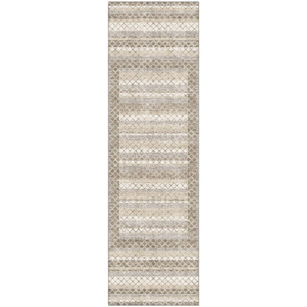 Mayfield Premium Machine Washable Abstract AMF2011 Taupe 2 ft. x 7 ft. Runner Rug