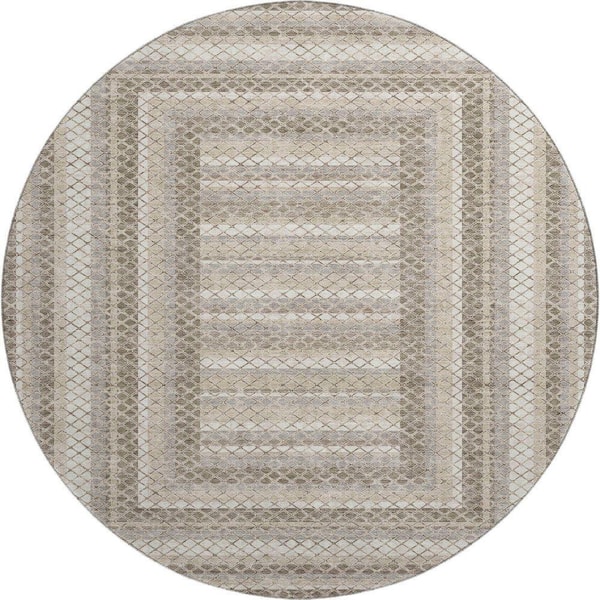 Mayfield Premium Machine Washable Abstract AMF2011 Taupe 8 ft. x 8 ft. Round Rug