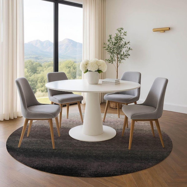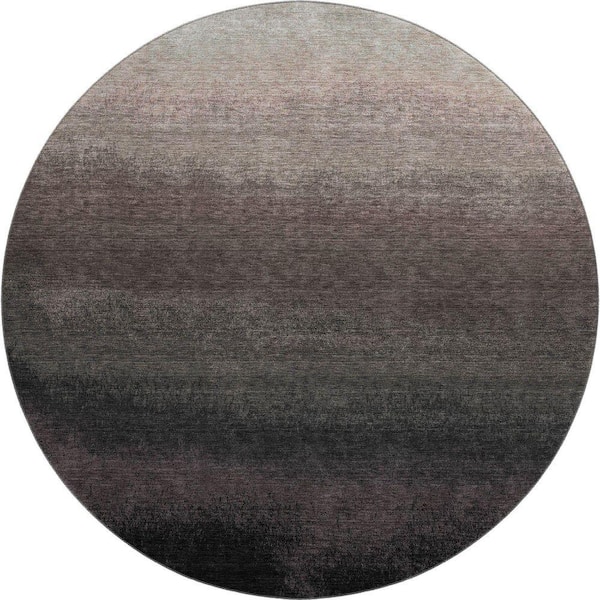 Mayfield Premium Machine Washable Abstract AMF2012 Black 8 ft. x 8 ft. Round Rug