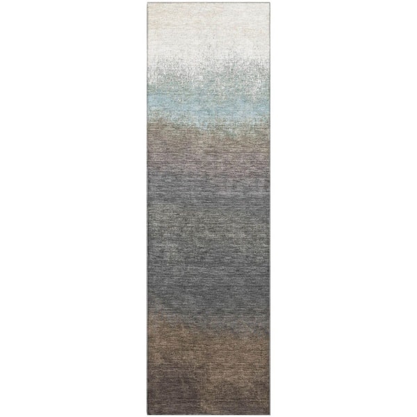 Mayfield Premium Machine Washable Abstract AMF2012 Brown 2 ft. x 7 ft. Runner Rug