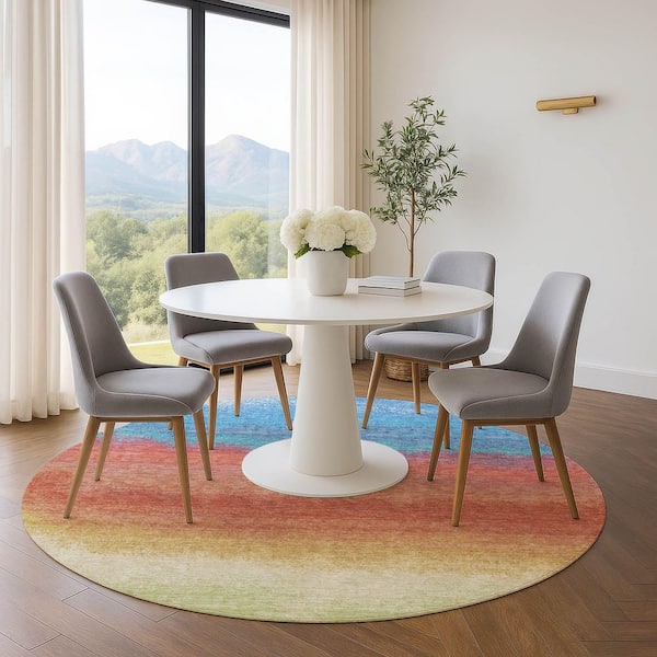 Mayfield Premium Machine Washable Abstract AMF2012 Coral 8 ft. x 8 ft. Round Rug