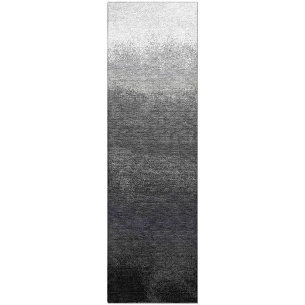 Mayfield Premium Machine Washable Abstract AMF2012 Gray 2 ft. x 7 ft. Runner Rug