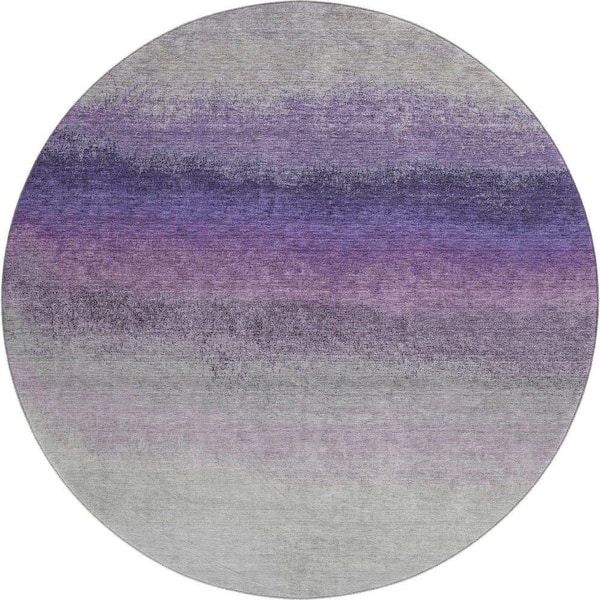 Mayfield Premium Machine Washable Abstract AMF2012 Lavender 8 ft. x 8 ft. Round Rug
