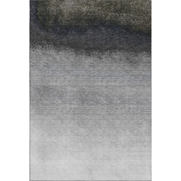 Mayfield Premium Machine Washable Abstract AMF2012 Silver 3 ft. x 4 ft. Area Rug