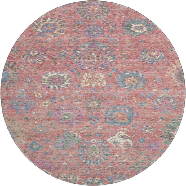 Mayfield Premium Machine Washable Abstract AMF2013 Coral 8 ft. x 8 ft. Round Rug