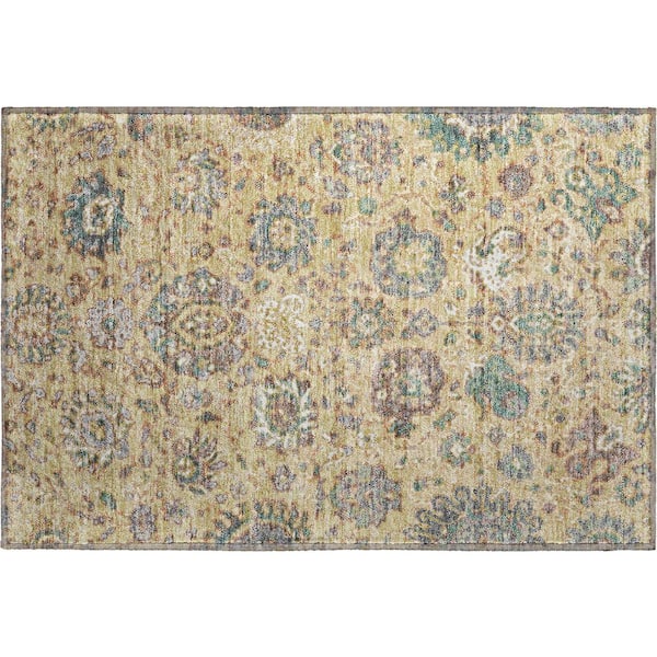 Mayfield Premium Machine Washable Abstract AMF2013 Gold 2 ft. x 3 ft. Accent Rug