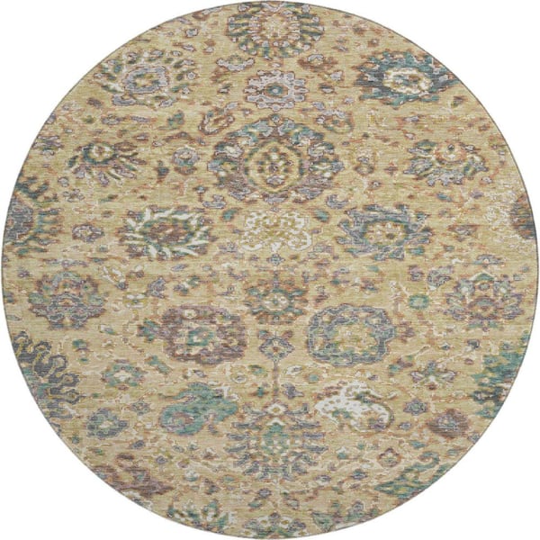 Mayfield Premium Machine Washable Abstract AMF2013 Gold 8 ft. x 8 ft. Round Rug