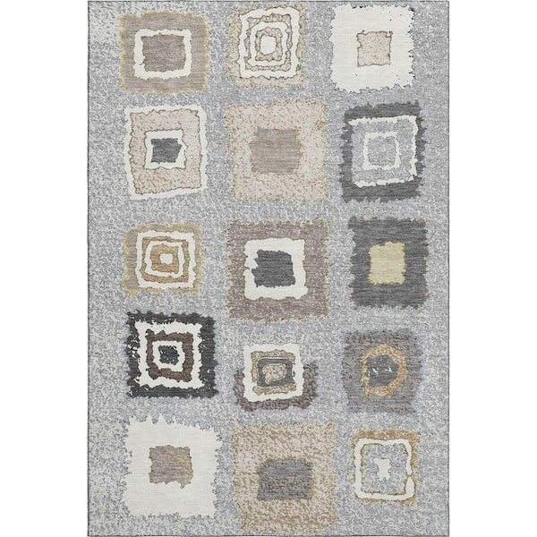 Mayfield Premium Machine Washable Abstract AMF2014 Gray 3 ft. x 4 ft. Area Rug