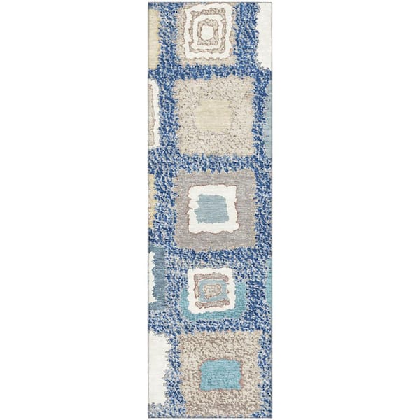 Mayfield Premium Machine Washable Abstract AMF2014 Navy 2 ft. x 7 ft. Runner Rug