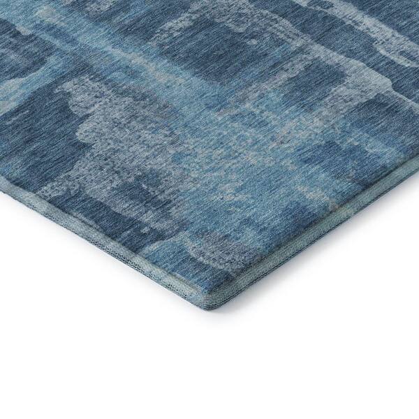 Mayfield Premium Machine Washable Abstract AMF2015 Denim 2 ft. x 7 ft. Runner Rug