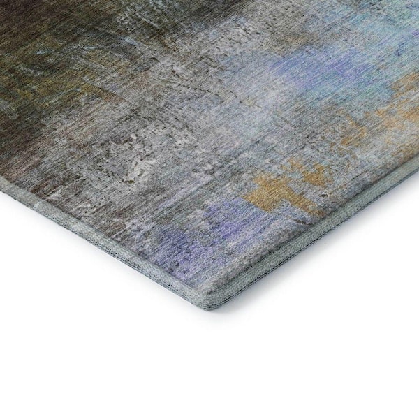 Mayfield Premium Machine Washable Abstract AMF2016 Brown 8 ft. x 8 ft. Round Rug