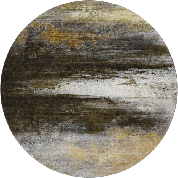 Mayfield Premium Machine Washable Abstract AMF2016 Chocolate 8 ft. x 8 ft. Round Rug