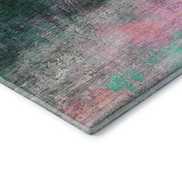 Mayfield Premium Machine Washable Abstract AMF2016 Green 2 ft. x 7 ft. Runner Rug