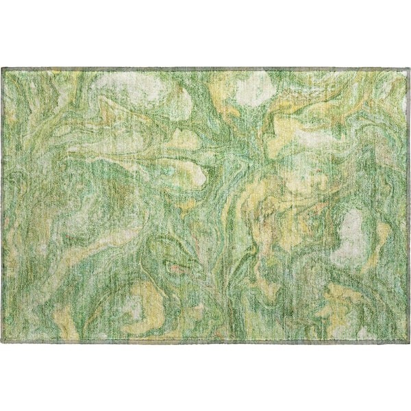 Mayfield Premium Machine Washable Abstract AMF2017 Green 2 ft. x 3 ft. Accent Rug