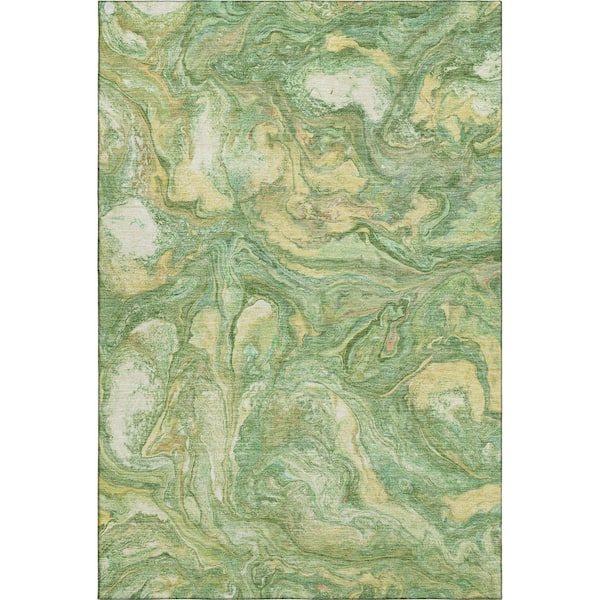 Mayfield Premium Machine Washable Abstract AMF2017 Green 3 ft. x 5 ft. Area Rug
