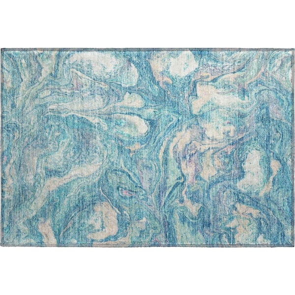 Mayfield Premium Machine Washable Abstract AMF2017 Teal 2 ft. x 3 ft. Accent Rug