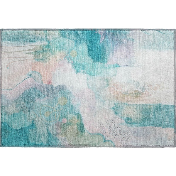 Mayfield Premium Machine Washable Abstract AMF2019 Turquoise 2 ft. x 3 ft. Accent Rug
