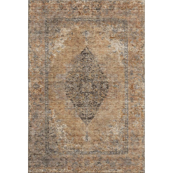 Mayfield Premium Machine Washable Abstract AMF2021 Copper 9 ft. x 12 ft. Area Rug