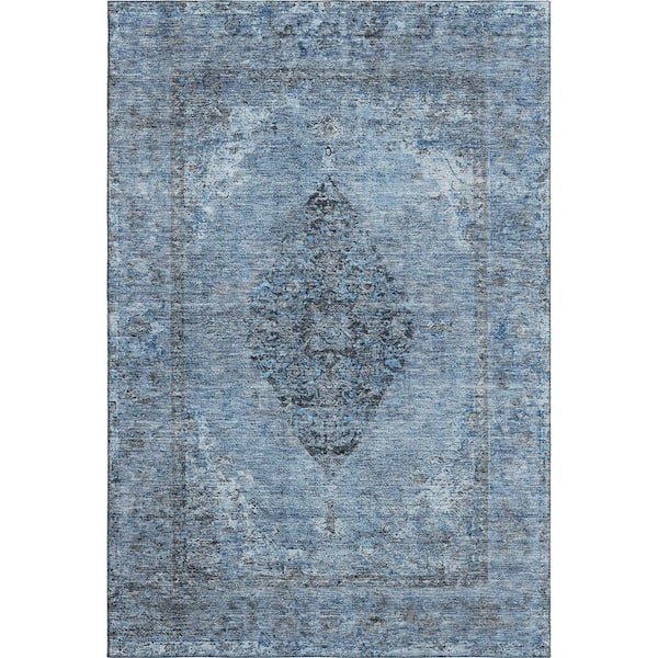 Mayfield Premium Machine Washable Abstract AMF2021 Denim 3 ft. x 4 ft. Area Rug