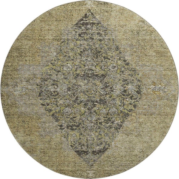 Mayfield Premium Machine Washable Abstract AMF2021 Khaki 8 ft. x 8 ft. Round Rug