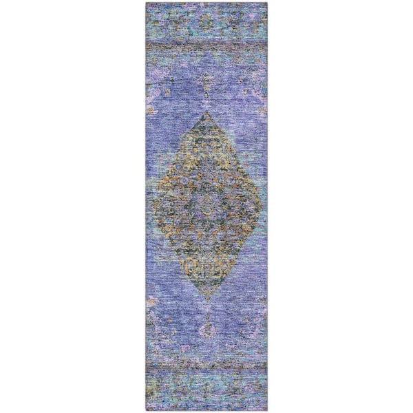 Mayfield Premium Machine Washable Abstract AMF2021 Purple 2 ft. x 7 ft. Runner Rug