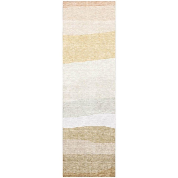 Mayfield Premium Machine Washable Abstract AMF2023 Wheat 2 ft. x 7 ft. Runner Rug