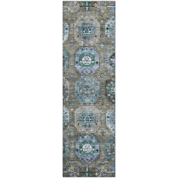 Mayfield Premium Machine Washable Abstract AMF2024 Brown 2 ft. x 7 ft. Runner Rug