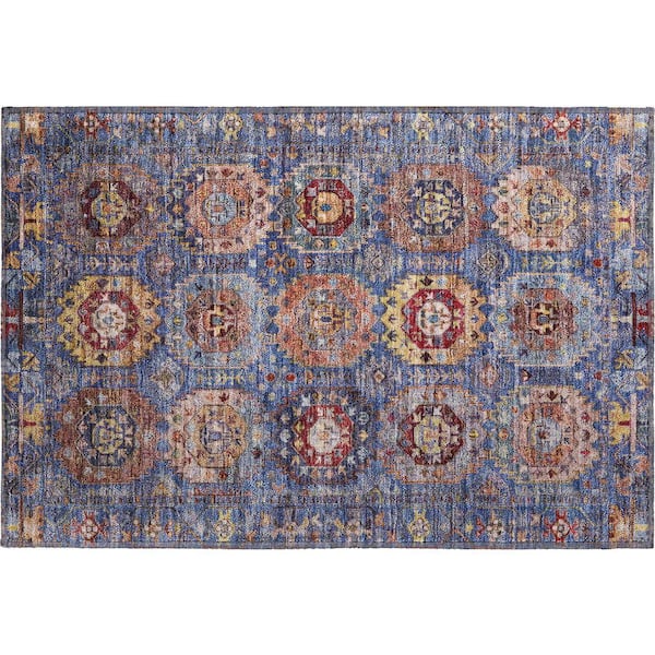 Mayfield Premium Machine Washable Abstract AMF2024 Denim 2 ft. x 3 ft. Accent Rug