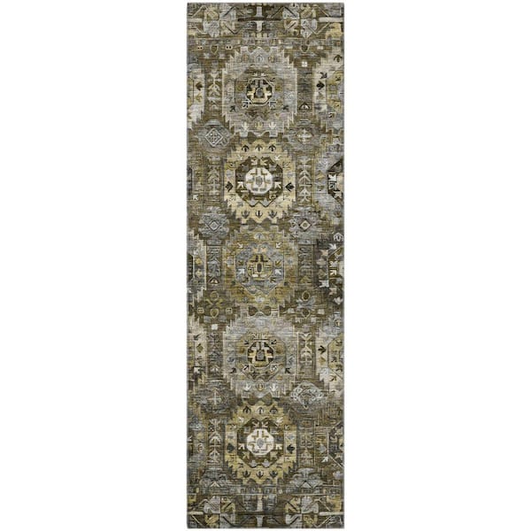 Mayfield Premium Machine Washable Abstract AMF2024 Mocha 2 ft. x 7 ft. Runner Rug