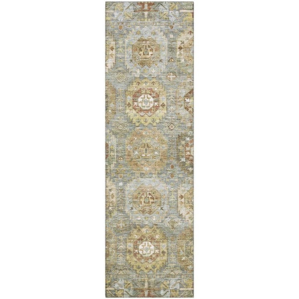 Mayfield Premium Machine Washable Abstract AMF2024 Sage 2 ft. x 7 ft. Runner Rug