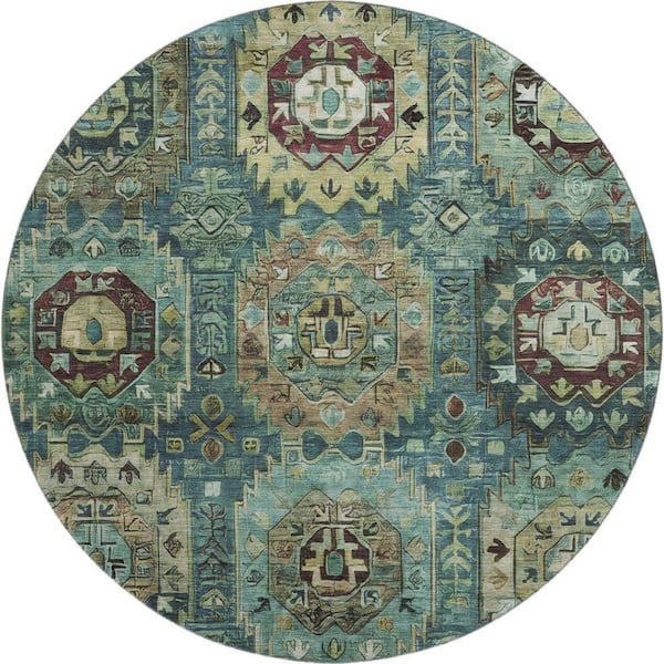 Mayfield Premium Machine Washable Abstract AMF2024 Teal 8 ft. x 8 ft. Round Rug