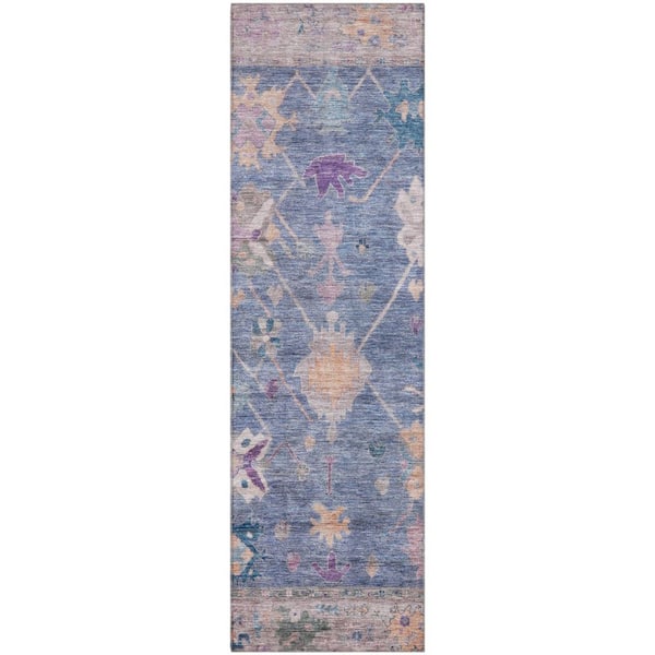 Mayfield Premium Machine Washable Abstract AMF2025 Blue 2 ft. x 7 ft. Runner Rug