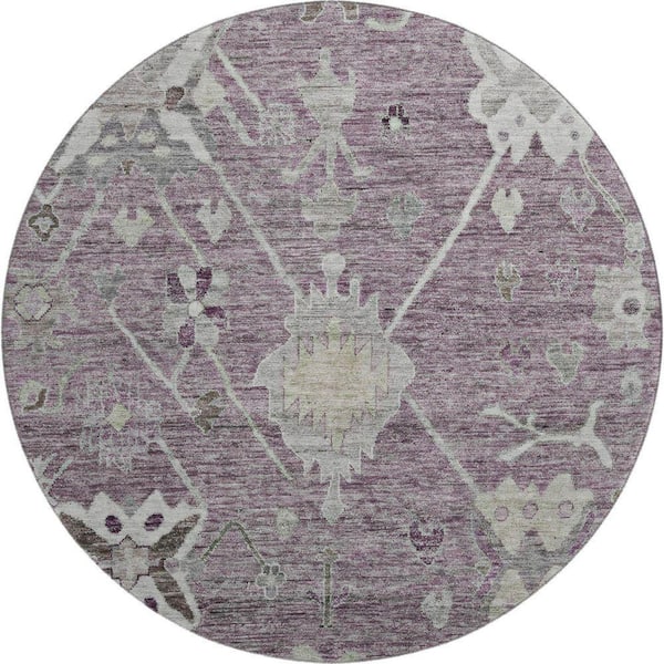 Mayfield Premium Machine Washable Abstract AMF2025 Merlot 8 ft. x 8 ft. Round Rug