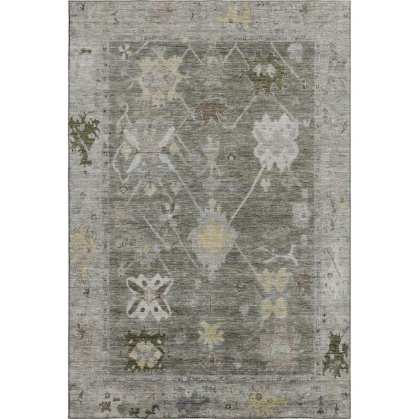 Mayfield Premium Machine Washable Abstract AMF2025 Pewter 5 ft. x 7 ft. 6 in. Area Rug