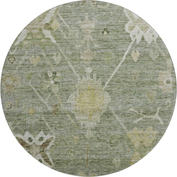 Mayfield Premium Machine Washable Abstract AMF2025 Sage 8 ft. x 8 ft. Round Rug