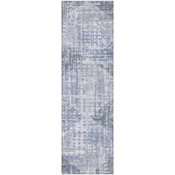 Mayfield Premium Machine Washable Abstract AMF2026 Blue 2 ft. x 7 ft. Runner Rug