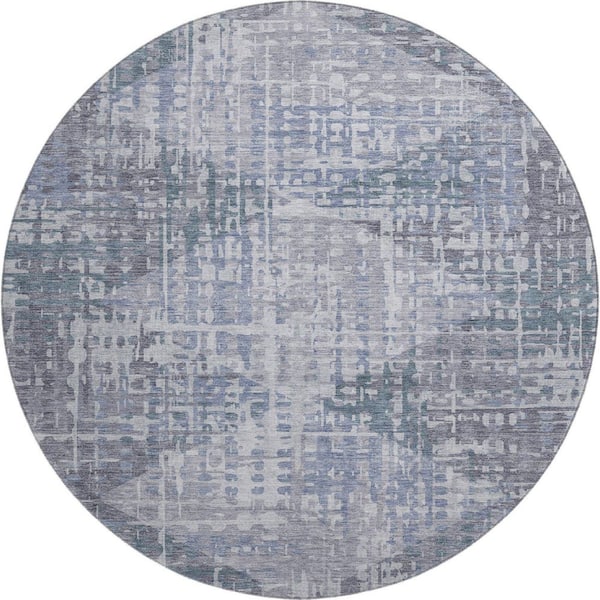 Mayfield Premium Machine Washable Abstract AMF2026 Blue 8 ft. x 8 ft. Round Rug