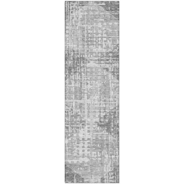Mayfield Premium Machine Washable Abstract AMF2026 Gray 2 ft. x 7 ft. Runner Rug
