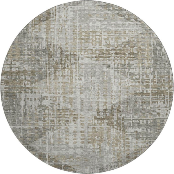 Mayfield Premium Machine Washable Abstract AMF2026 Pewter 8 ft. x 8 ft. Round Rug