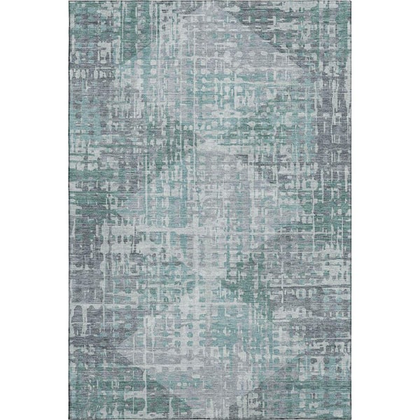 Mayfield Premium Machine Washable Abstract AMF2026 Teal 3 ft. x 4 ft. Area Rug