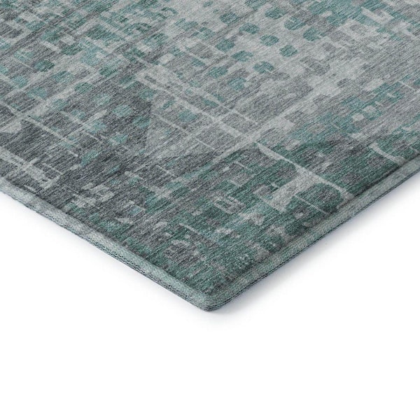 Mayfield Premium Machine Washable Abstract AMF2026 Teal 3 ft. x 5 ft. Area Rug
