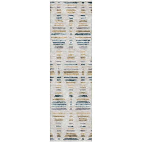 Mayfield Premium Machine Washable Abstract AMF2027 Linen 2 ft. x 7 ft. Runner Rug