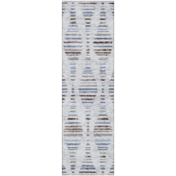 Mayfield Premium Machine Washable Abstract AMF2027 Putty 2 ft. x 7 ft. Runner Rug