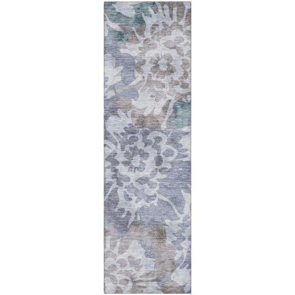 Mayfield Premium Machine Washable Abstract AMF2028 Blue 2 ft. x 7 ft. Runner Rug