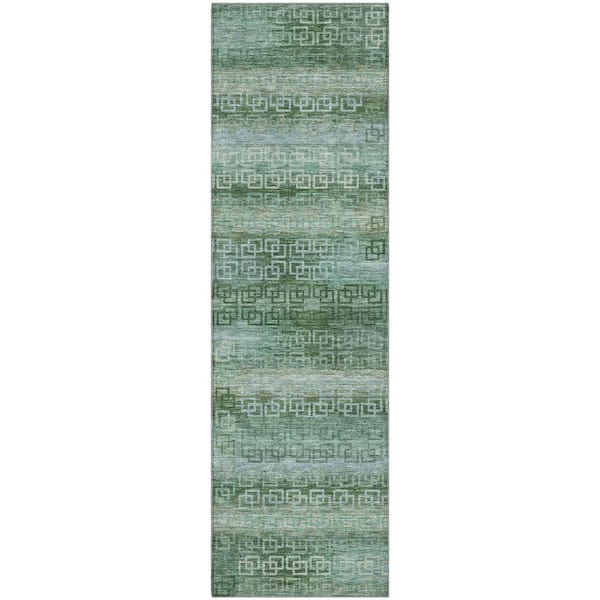 Mayfield Premium Machine Washable Abstract AMF2029 Aloe 2 ft. x 7 ft. Runner Rug