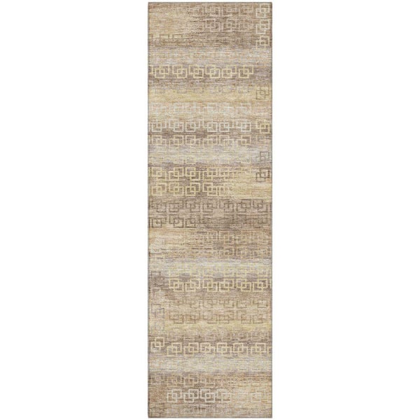 Mayfield Premium Machine Washable Abstract AMF2029 Beige 2 ft. x 7 ft. Runner Rug