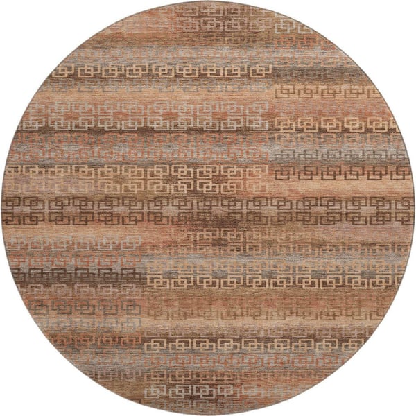 Mayfield Premium Machine Washable Abstract AMF2029 Copper 8 ft. x 8 ft. Round Rug