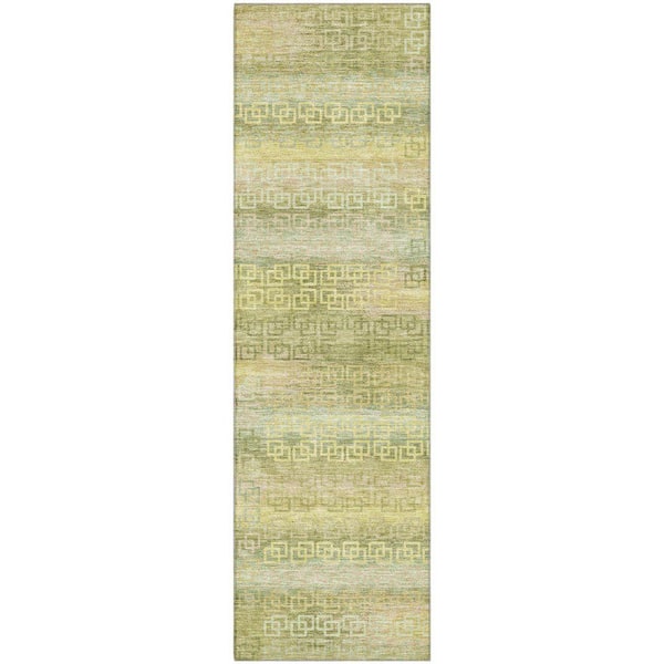 Mayfield Premium Machine Washable Abstract AMF2029 Sage 2 ft. x 7 ft. Runner Rug