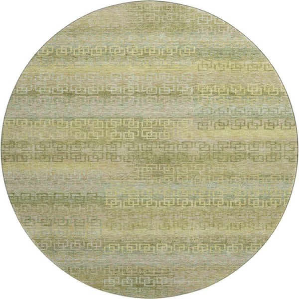 Mayfield Premium Machine Washable Abstract AMF2029 Sage 8 ft. x 8 ft. Round Rug